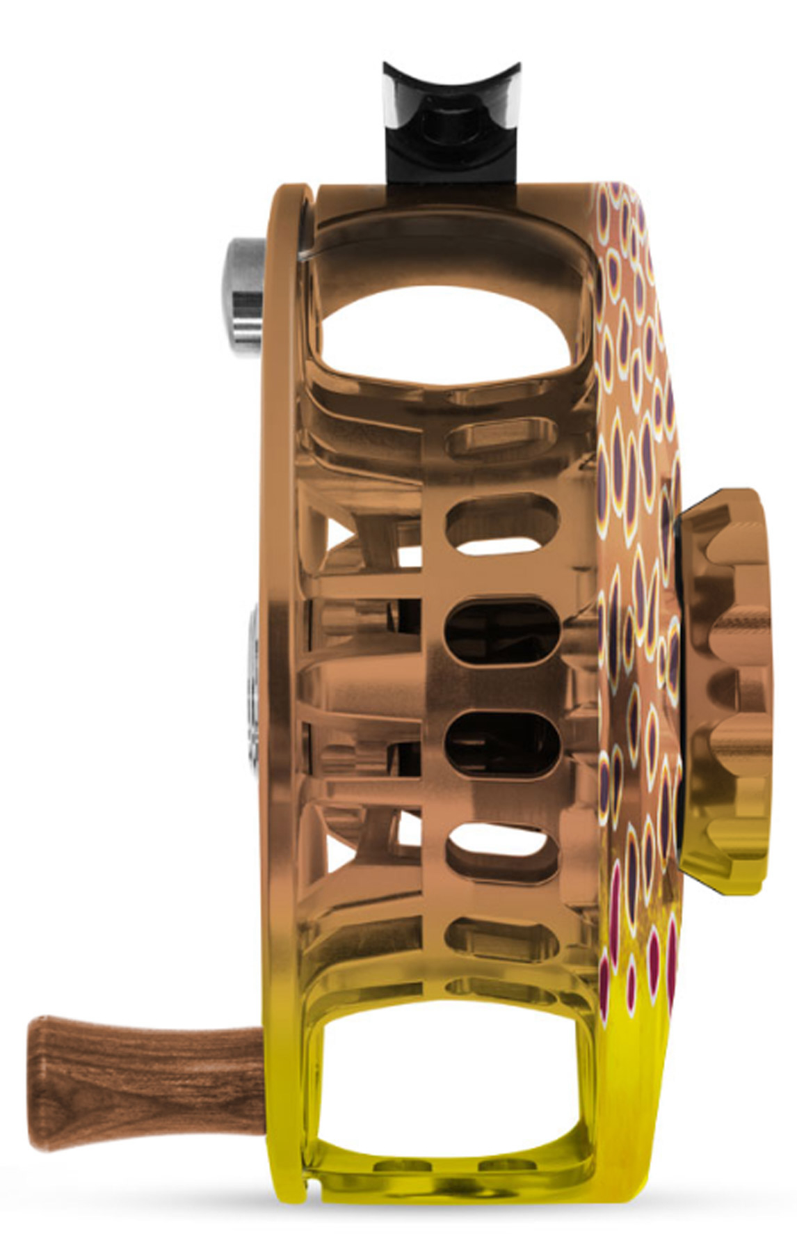 Jedes Abel®-Produkt dieser stark limitierten Auflage ist ein einzigartiges Design, das in Handarbeit in der Eloxierwerkstatt in Camarillo, Kalifornien, individuell anodisiert wird – unter Verwendung des firmeneigenen künstlerisch-metallurgischen Verfahrens. Dabei benötigen die Designs zwischen 2 und 14 Stunden, bis ein einzelner Mitarbeiter sie fertiggestellt hat. Mit dieser Fliegenrolle erhält man also nicht nur eine der hochwertigsten Rollen überhaupt, sondern auch ein echtes Einzelstück, das seinesgleichen sucht.