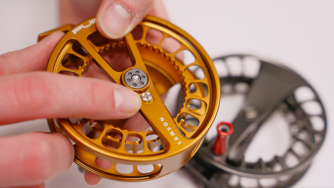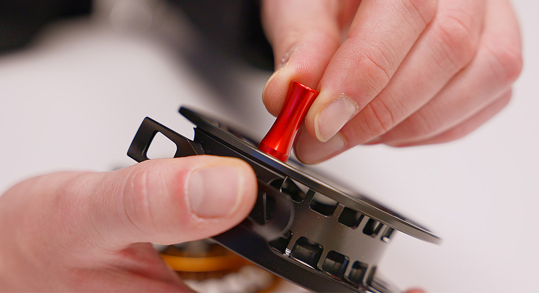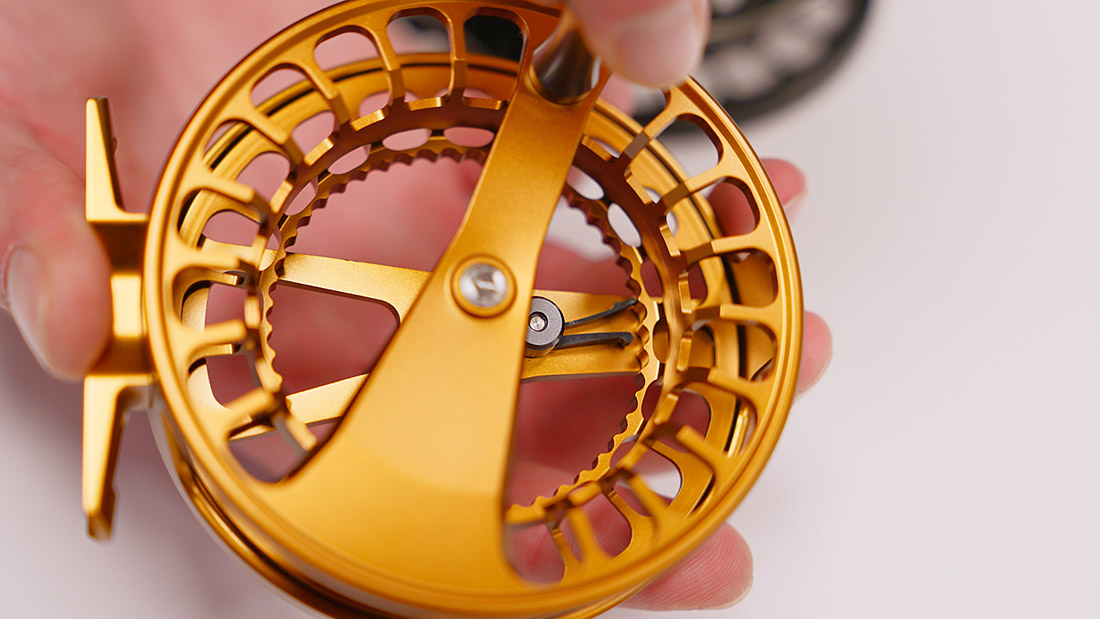 Anstelle eines komplexen Scheibenbremssystems setzt Lamson hier bewusst auf das traditionelle Click & Pawl-System. Es bietet ein direktes Feedback beim Drill und verleiht jedem Fischkontakt eine besondere Note. Die Lautstärke und Stärke des Klicks sind optimal abgestimmt – nicht zu aufdringlich, aber deutlich spürbar. Ein moderner Twist: mit Hilfe eines kleinen, mitgelieferten Imbus-Schlüssels kann der Clicker entlang eines Langslochs justiert werden. Der Bremswiderstand (ebenso der Clicker-Sound) kann somit etwas an das individuelle Bedürfnis angepasst werden.