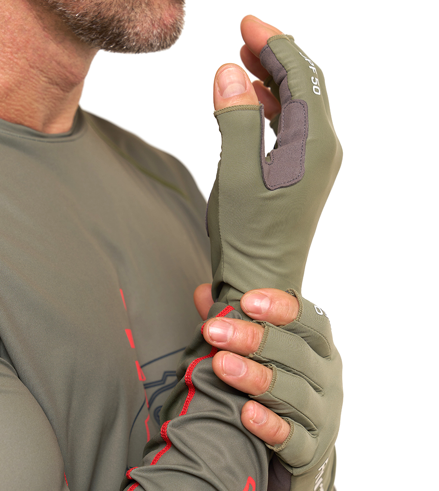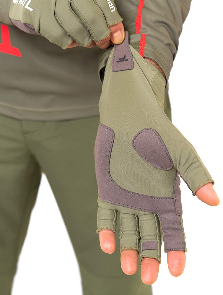 Das atmungsaktive, elastische Material bietet einen UV-Schutz mit einem UPF-Wert von 50 und sorgt gleichzeitig für ein angenehmes Tragegefühl bei hohen Temperaturen. Die offenen Finger ermöglichen präzises Arbeiten mit Angelgerät, während verstärkte Handflächen die Handschuhe robuster machen und den Grip zur Fliegenrute erhöhen. Feuchtigkeit wird gut aufgenommen und die Handschuhe trocknen schnell. Zudem erleichtert eine kleine Schlaufe an einem Finger das Ausziehen der Handschuhe.