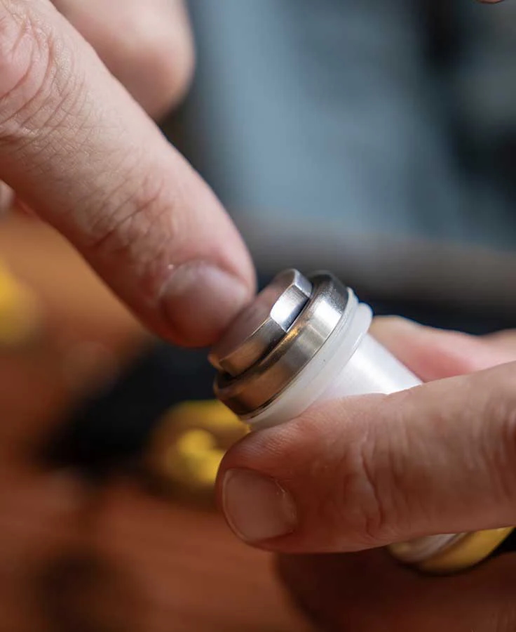 Bei dem Loon Ergo Dialed In Bobbin, handelt es sich um einen neuen und komplett überarbeitetem Bobbin aus der Ergo Serie. Der etwas dickere Griff des Ergo Bobbins liegt dank Daumenmulde perfekt zwischen den Fingern und die Länge des Röhrchen lässt sowohl Arbeiten an kleinen Trockenfliegenmustern zu als auch an buschigen Hechtfliegen zu. Der Spulenhalter aus japanischem Federstahl bietet bei jeder Größe ausreichend Druck, dass der Faden nicht unkontrolliert abrollt und du kannst durch ein Rad wie bei deiner Fliegenrolle den Druck auf den Faden verringern oder erhöhen.