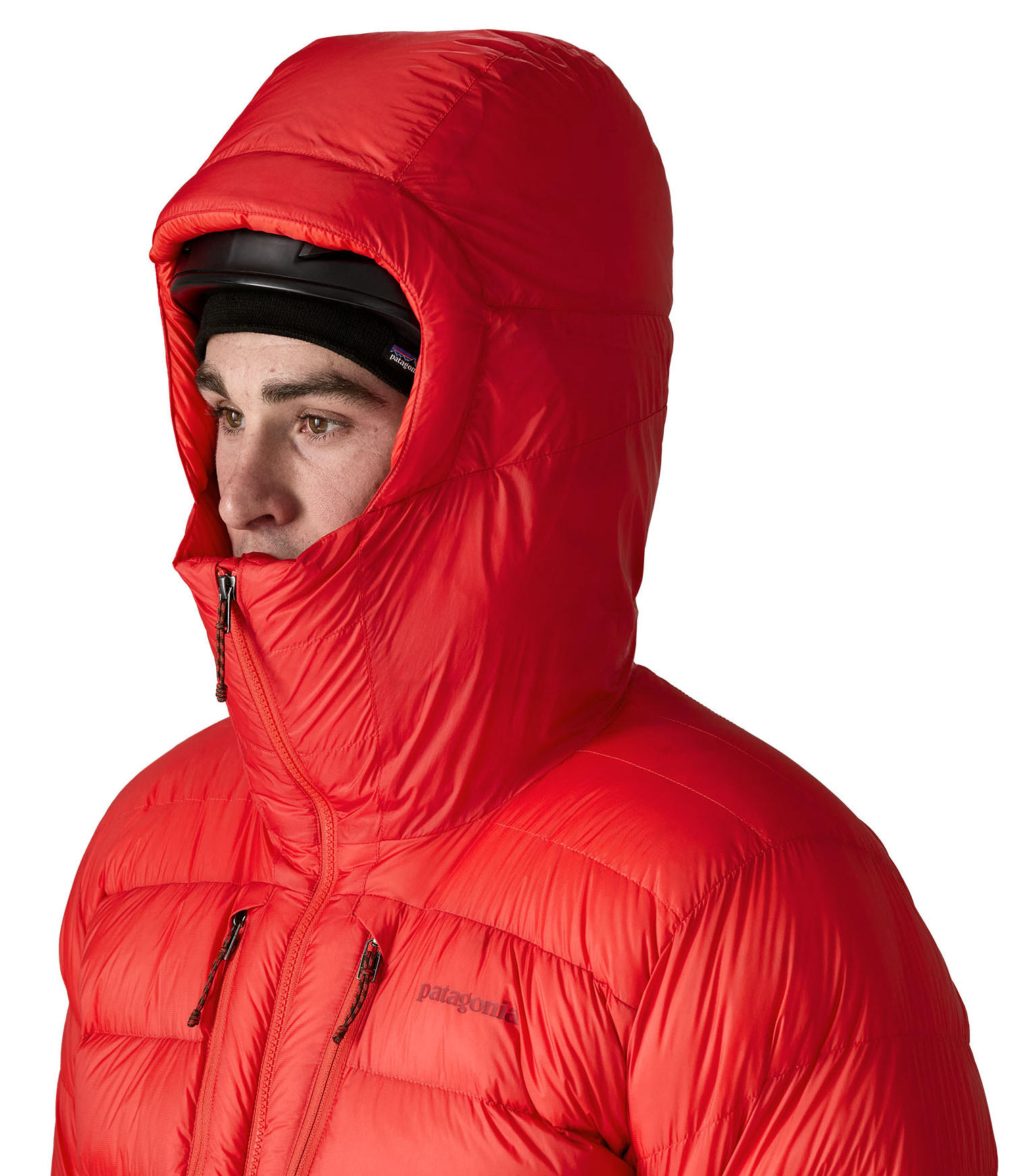 - Helmkompatible, kammergenähte Kapuze mit Singlepull-Zugkordel und hoher, dicker Wärmekragen