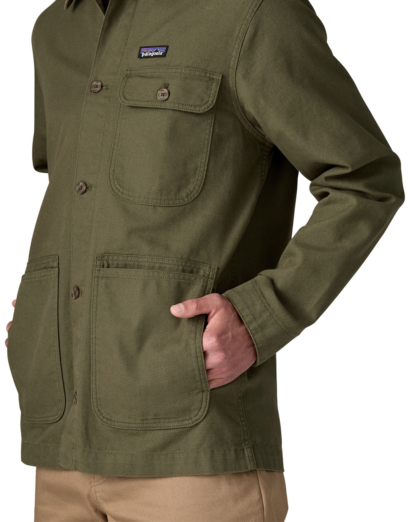 Auch in puncto Nachhaltigkeit bleibt Patagonia seiner Linie treu: Die verwendete Bio-Baumwolle wird ohne den Einsatz von synthetischen Pestiziden oder gentechnisch verändertem Saatgut angebaut. Die Jacke ist bewusst schlicht gehalten, um modische Kurzlebigkeit zu vermeiden, und auf eine lange Lebensdauer ausgelegt.