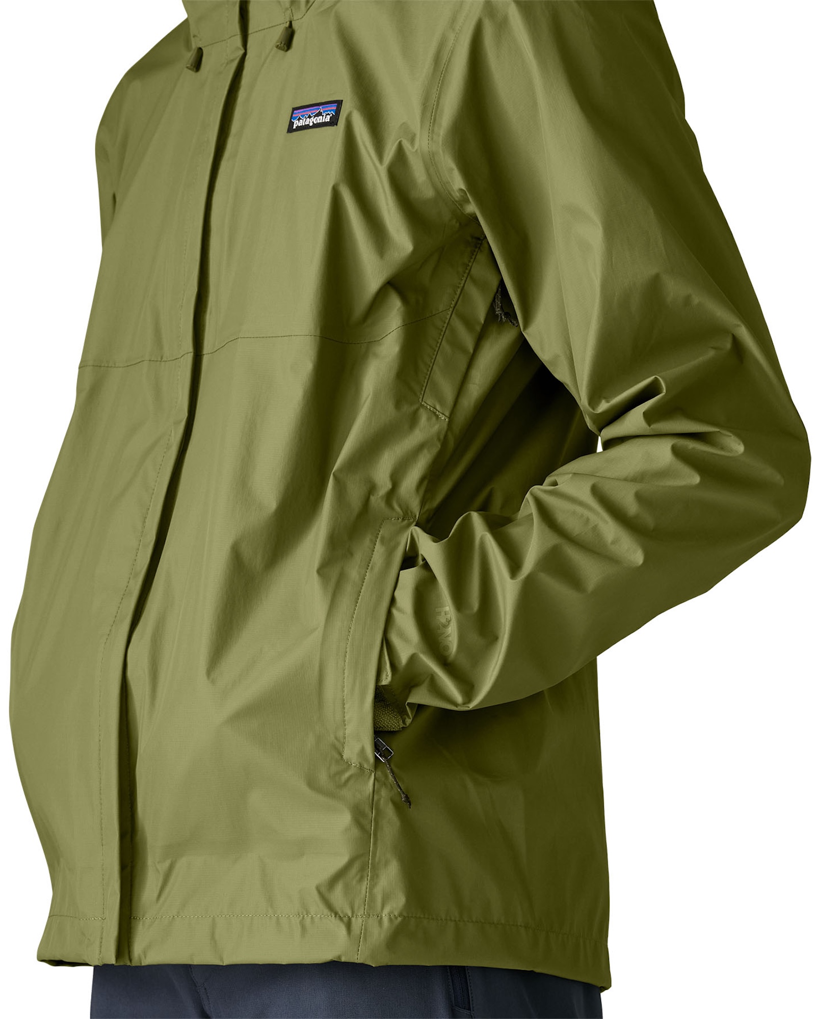 Sie erfüllt den H2No™ Performance Standard von Patagonia und bietet damit höchste wasser- und winddichte sowie atmungsaktive Funktionalität. Das dreilagige Außenmaterial aus 100 % recyceltem Gewebe garantiert langanhaltenden Schutz vor Nässe und sorgt dank nachhaltiger DWR-Imprägnierung ohne PFAS für ein gutes Gefühl – für dich und die Umwelt. Die zweifach verstellbare Kapuze mit laminiertem Schirm lässt sich bei Bedarf einrollen und platzsparend verstauen. Ein mit Mikrofleece gefütterter Kragen schmiegt sich angenehm an und hält Feuchtigkeit zuverlässig fern. Der Frontreißverschluss ist so konstruiert, dass er nicht verhakt und durch doppelte Windleisten sowie eine Schieberabdeckung zusätzlichen Schutz und Komfort bietet. Zwei paspelierte Handwärmtaschen und Unterarm-Reißverschlüsse sorgen für praktische Staumöglichkeiten und Belüftung, während sich die gesamte Jacke in ihrer linken Tasche mit Karabinerschlaufe verstauen lässt. Klettbündchen und ein regulierbarer Saum verhindern, dass Wind und Regen eindringen.