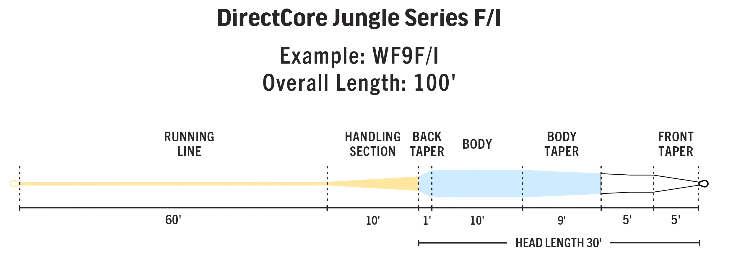 Die Rio DirectCore Jungle Fliegenschnüre sind sehr robuste Fliegenschnüre, die so konzipiert wurden, dass sie der Hitze und den starken Beanspruchungen im Jungle standhalten. Die Jungle Fliegenschnur aus der DirectCore Serie ist eine kraftvolle Schnur, die auch das Werfen mit großen, buschigen Fliegen ermöglicht. Die 9,1 m lange kurze Keule lädt die Ruten perfekt auf und das bereits im Nahbereich. Bei der Fischerei auf Dorado oder Peacock Bass zahlt sich der kompakte Aufbau der Schnur besonders aus, denn so ist ein ermüdungsfreies Werfen über den ganzen Tag garantiert!