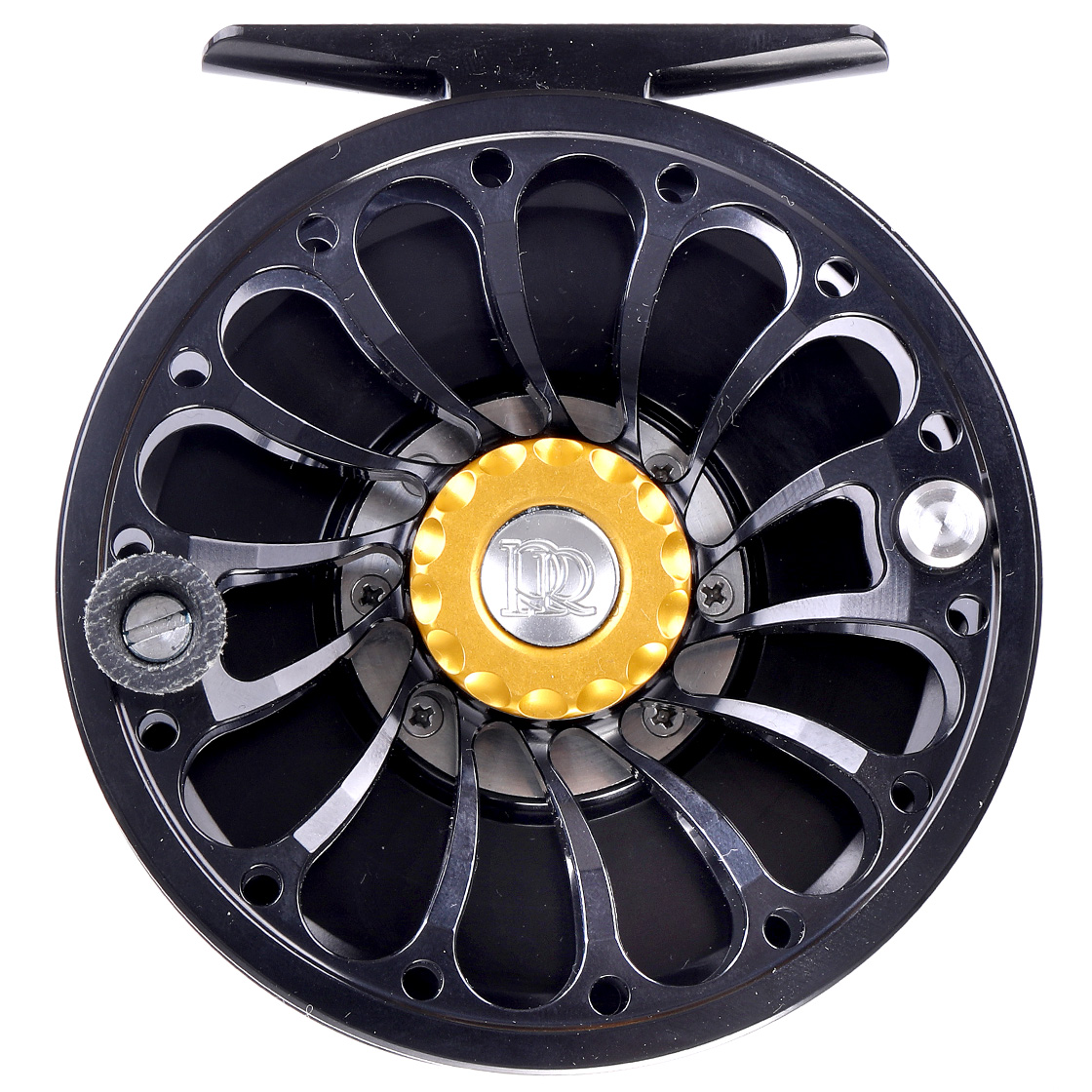 - Sicherungsknopf der Spule aus Edelstahl mit Ross Reels Logo