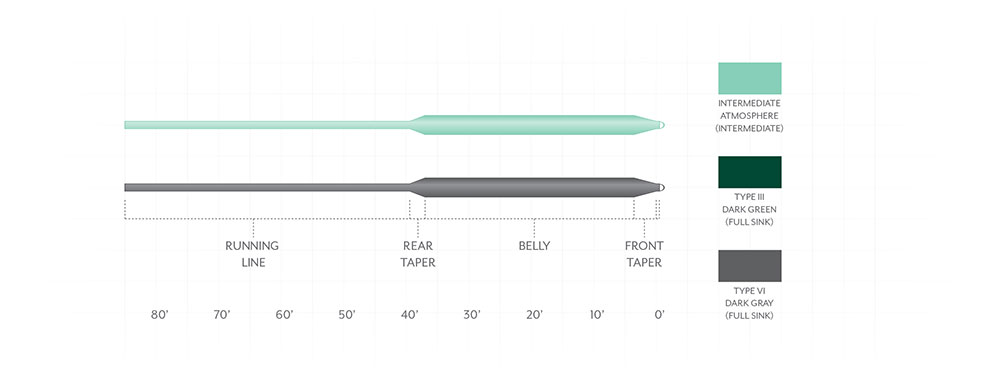- Vollsinkende Fliegenschnur (Sink Rate: 6 ips)