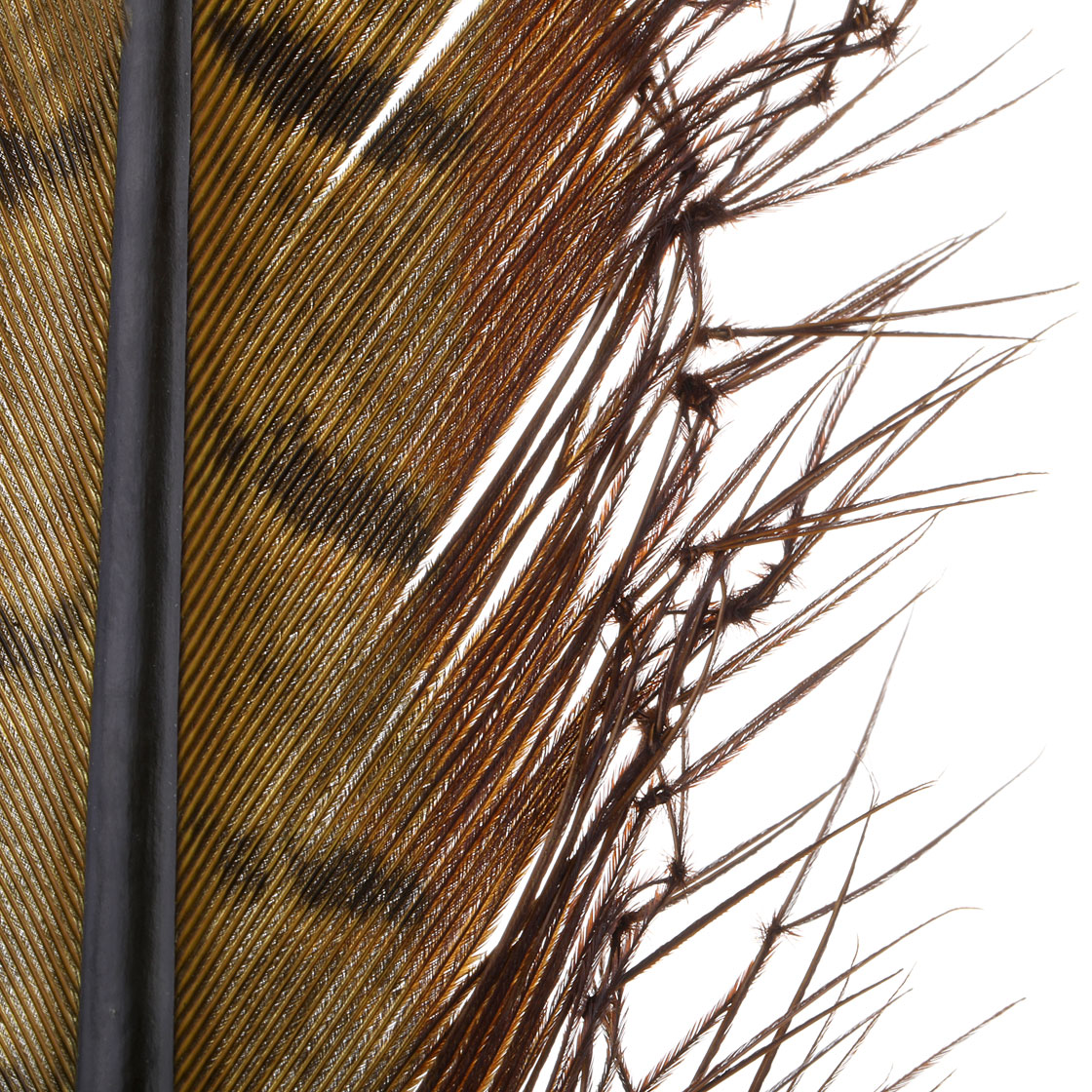 Die Schwanzfeder des Fasans eignet sich hervorragend zum Binden von Beinchen aller Art – zum Beispiel für Grashüpfer (Hopper) oder Schnaken (Cranefly oder Daddy Long Leg). Hierzu wird in die feinen Fibern des Naturmaterials ein Knoten gezogen, der die Segmentierung des Insektenbeines imitiert. Und weil das Knoten der empfindlichen Pheasant Tail Feder nicht ganz so einfach ist, erhältst du hier ein großes Stück einer Feder im Naturton mit bereits fertigen Knoten. So geht das Binden von fängigen Mustern viel schneller von der Hand und du sparst dir einige Nerven am Bindestock.