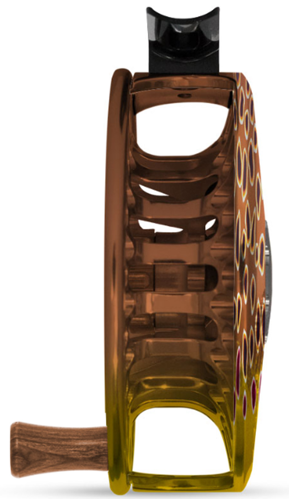 Jedes Abel®-Produkt dieser stark limitierten Auflage ist ein einzigartiges Design, das in Handarbeit in der Eloxierwerkstatt in Camarillo, Kalifornien, individuell anodisiert wird – unter Verwendung des firmeneigenen künstlerisch-metallurgischen Verfahrens. Dabei benötigen die Designs zwischen 2 und 14 Stunden, bis ein einzelner Mitarbeiter sie fertiggestellt hat. Mit dieser Fliegenrolle erhält man also nicht nur eine der hochwertigsten Rollen überhaupt, sondern auch ein echtes Einzelstück, das seinesgleichen sucht.