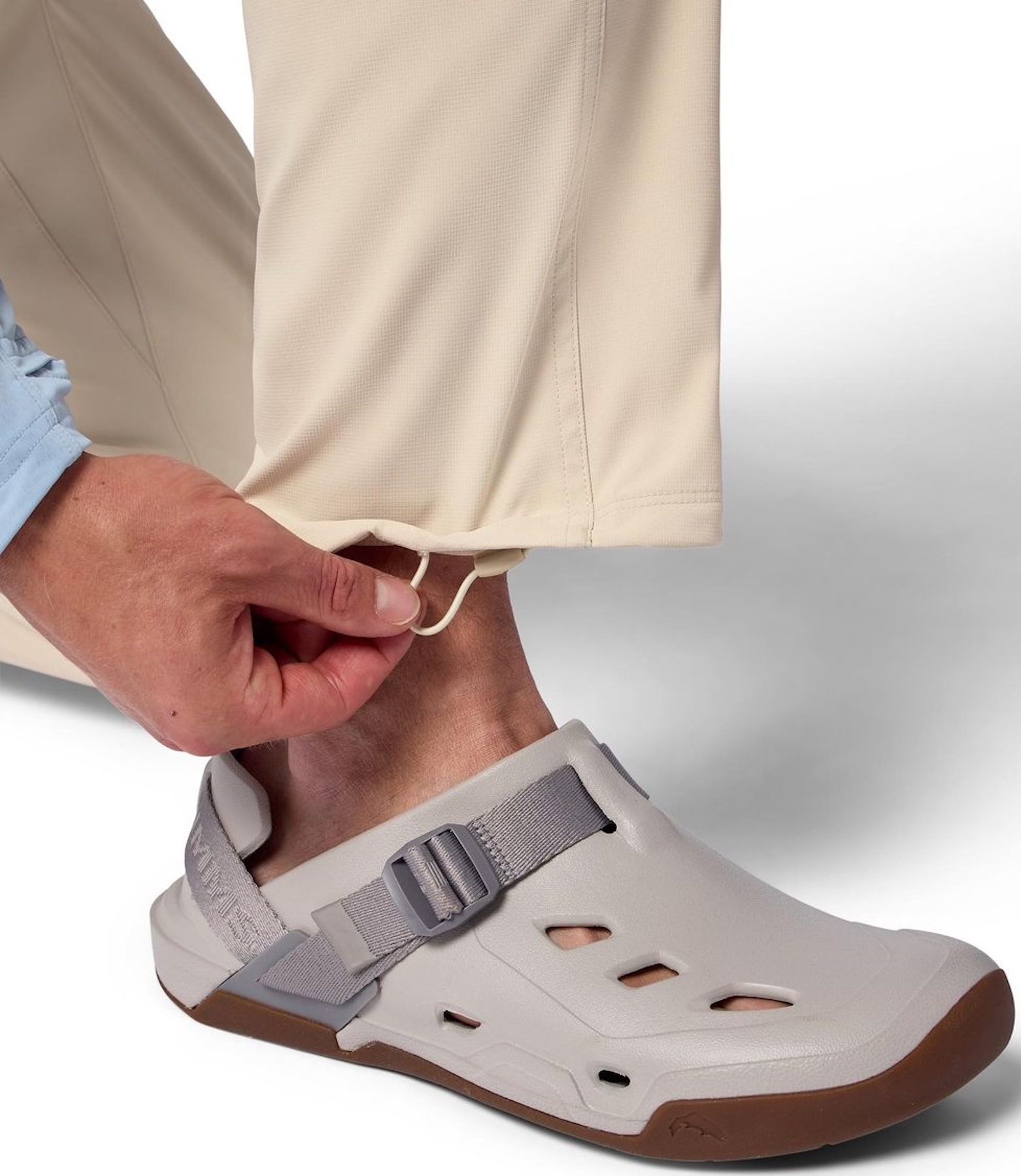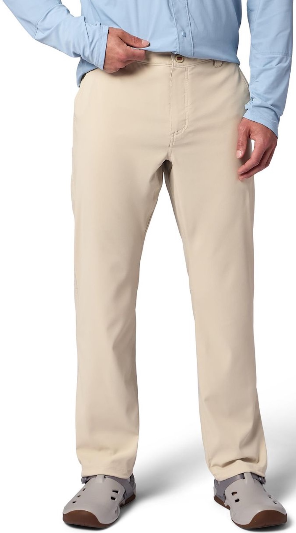 Die lange Version ist perfekt für Angler, die zusätzlichen Schutz und volle Bewegungsfreiheit benötigen. Flex-Fit, Zwickel im Schritt und vorgeformte Kniepartien sorgen für uneingeschränkte Beweglichkeit. Der feste Bund mit Reißverschluss, Knopfverschluss, verstärkten Gürtelschlaufen und innenliegendem Kordelzug garantiert sicheren Sitz. Ein leichter Kordelzug am Beinabschluss ermöglicht es dir, die Hose beim Waten eng zu fixieren. Dennoch gilt: Auch mit UV-Schutz sollte unbedeckte Haut zusätzlich geschützt werden – besonders bei reflektierender Sonneneinstrahlung auf dem Wasser.