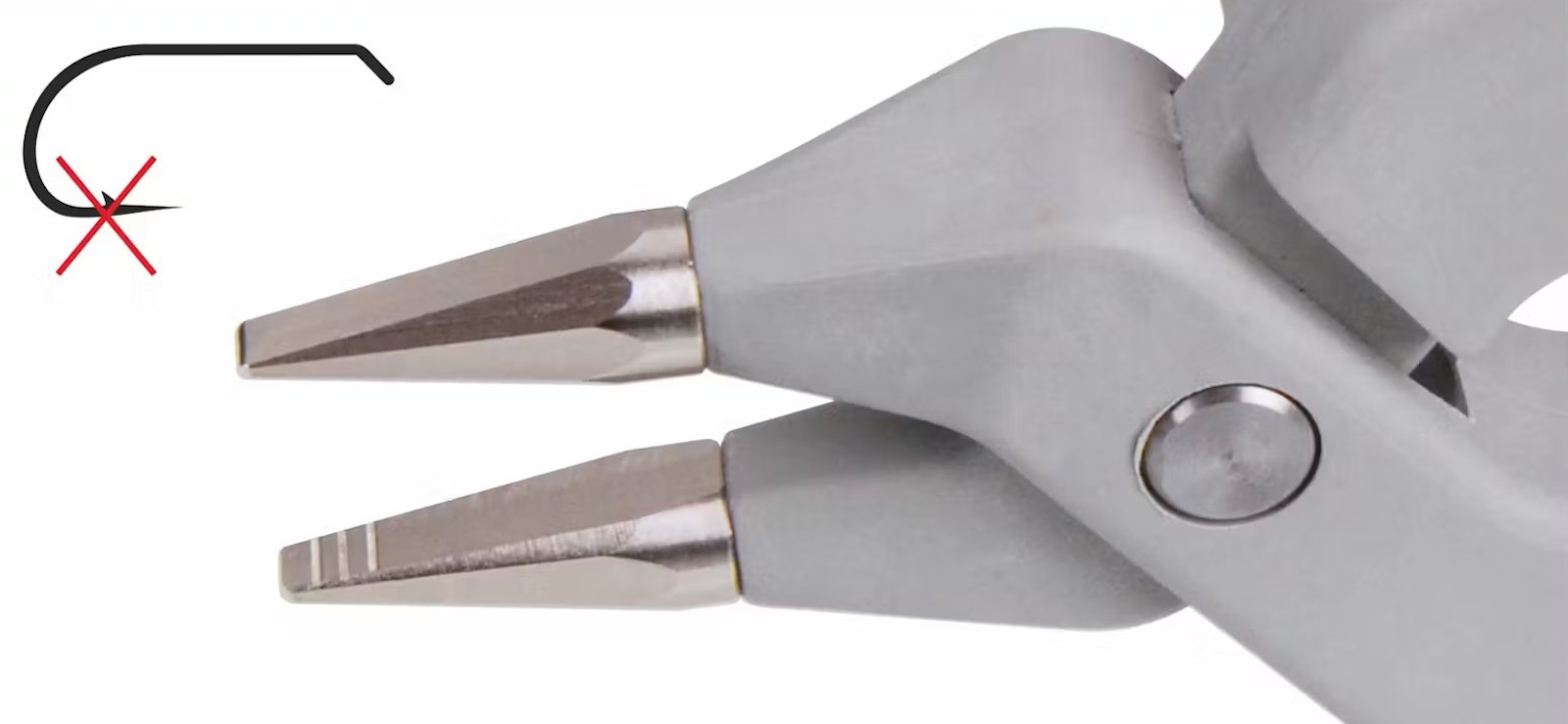 Dank ihrer flachen und dünnen Backen aus gehärtetem Stahl eignet sich die Zange nicht nur perfekt zum Entgraten von Haken, sondern auch hervorragend zum sicheren Lösen des Hakens aus dem Fischmaul. Die präzise Greiffläche ermöglicht kontrolliertes Arbeiten selbst bei kleinen Haken und feinen Drähten.