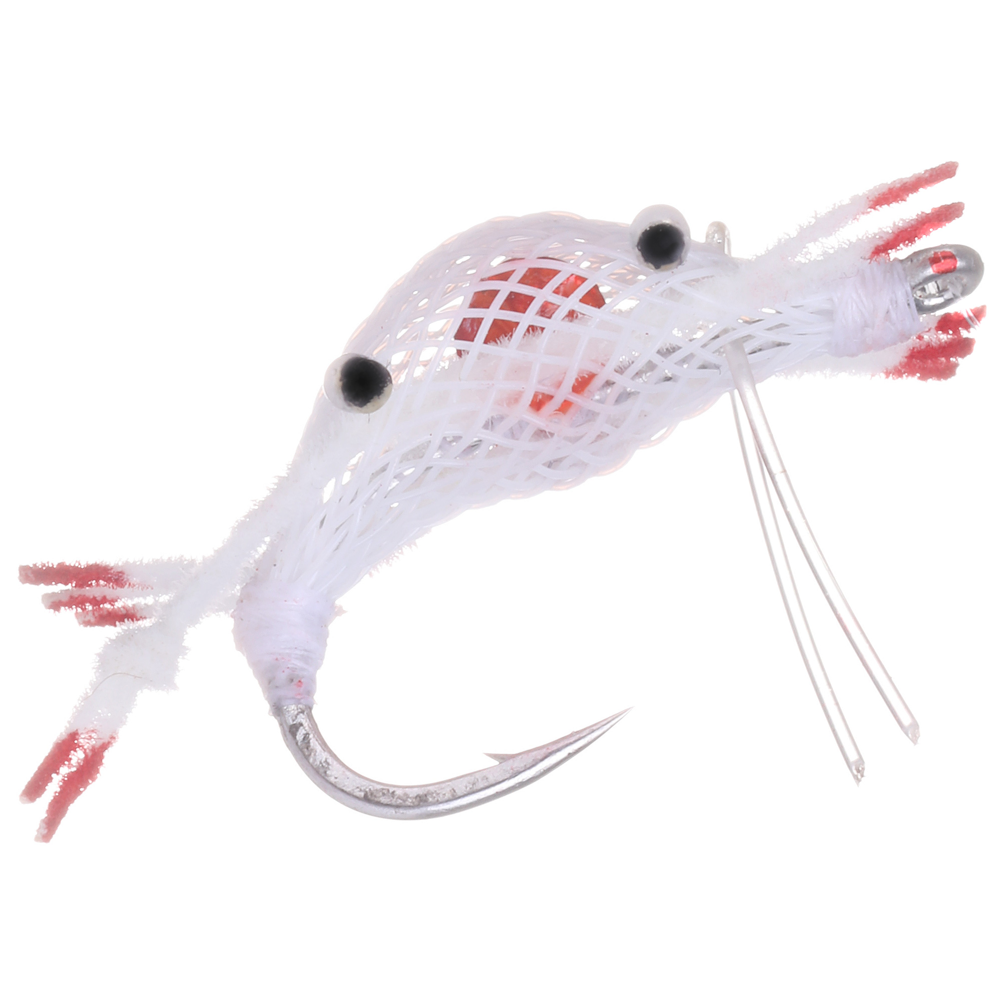 Das Muster ist auf einem der besten Salzwasserhaken gebunden, dem Gamakatsu SL11. Ein extrem scharfer und robuster Salzwasserhaken, der selbst bei einer langsamen Führung nicht so schnell stumpf wird, wenn er den Boden streift. Ein zusätzlicher Vorteil für diese Präsentation ist natürlich, dass das Muster durch Verwendung von Dumbell Eyes Upside-Down gebunden ist und der Haken somit stets nach oben zeigt. Zudem wurde die Krappe mit einem Mono-Krautschutz gebunden, sodass sich Seegras oder anderes am Boden liegendes Kraut nicht um den Hakenbogen legen kann. Auch die Bindematerialien sind natürlich hochwertig verarbeitet und die Farben der Muster wurden sorgfältig ausgewählt und bewährt getestet.