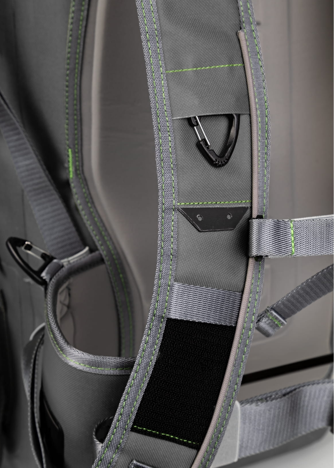 Der integrierte Karabiner eignet sich zur sicheren Anbringung eines Kescherkopfes. Der Tragekomfort überzeugt durch ein gepolstertes, formstabiles Rückenpanel sowie verstellbare, ergonomisch geformte Schulterträger mit Frontstern-Gurt und abnehmbarem Hüftgurt – ideal auch bei längeren Ausflügen. Am Frontbereich der Schulter- und Hüftgurte befinden sich zudem Karabiner, D-Ringe und Klettflächenelemente für weiteres Zubehör.
