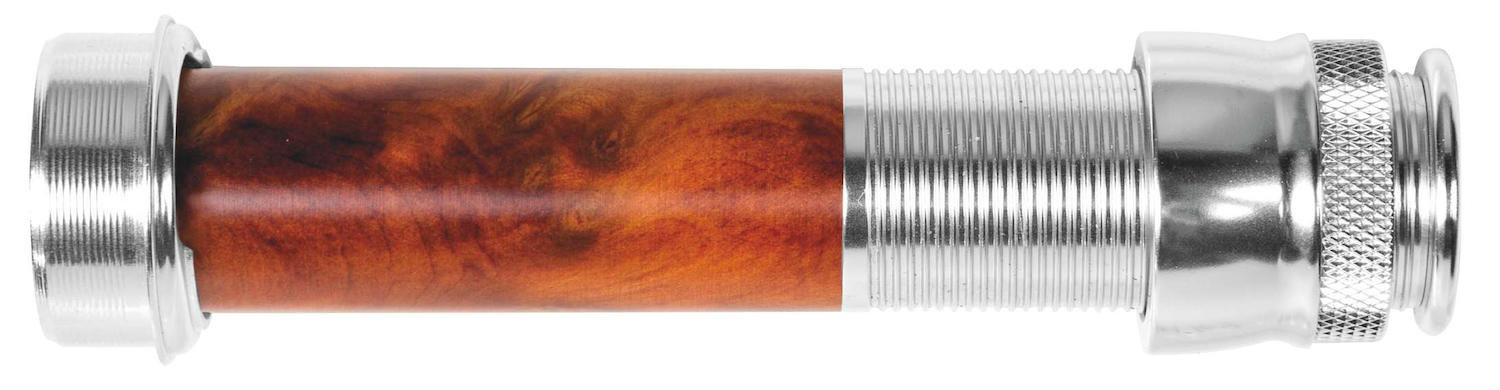 Die Holz-Spacer der Rollenhalter sind aus einem exotischemn Holz und können in der Maserung vom Bild abweichen. Das Holz ist aber nicht nur hübsch anzuschauen, es ist auch ein besonders langliebiges und leichtes Material. Die Spacer sind sicher in die jeweiligen Schraubverbindungen des Rollenhalters eingefasst, welche in verschiedenen Farben verfügbar sind. Der Rollenschuh, mit dem die Fliegenrolle gehalten wird, wird mit einer geriffelten Kontermutter gesichert, die sich dank des guten Grips fest anziehen lässt. Die Traper Rollenhalter sind zeitlose und günstige Rollenhalter für das bauen von Fliegenruten, die in Puncto Qualität keine Abstriche machen.