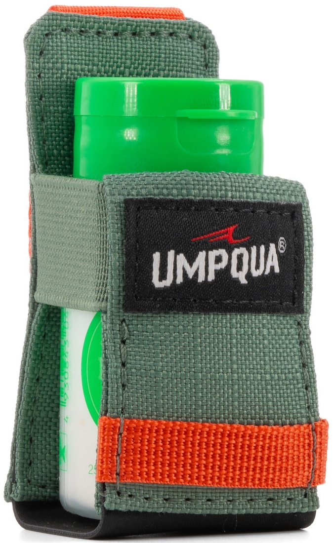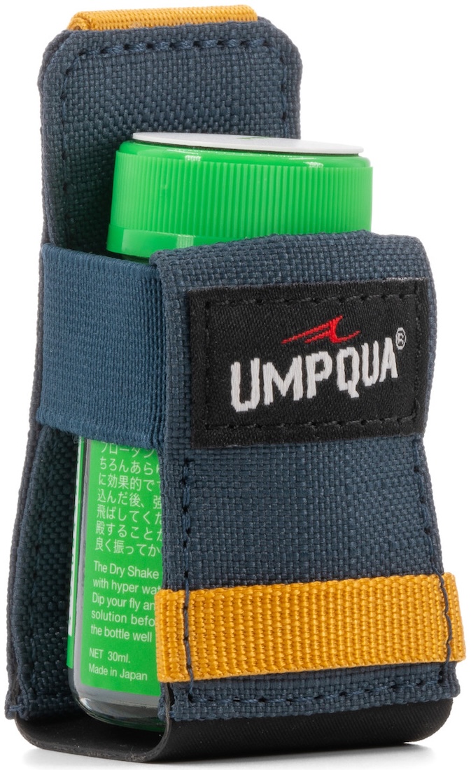 Der Umpqua Northfork Shimi Shake Dock/Holder ist ein genialer Halter, um deinen Umpqua Taschen ein Upgrade zu verpassen. Der Halter wird einfach an den Molle Paneele Laschen von Umpqua befestigt, die sich an allen Taschen von Umpqua befinden. Natürlich kann der Dry-Shake Halter auch an anderen Taschen befestigt werden, wie von Fishpond, Patagonia und Co., solange die Taschen eine Möglichlkeit bieten, diesen zu befestigen. Der Vorteil eines Flotant Halters liegt klar auf der Hand. Das Dry Shake Fläschchen ist außen an der Tasche immer schnell griffbereit, denn wenn der Fisch fleißig am Steigen ist, muss es schnell gehen.
