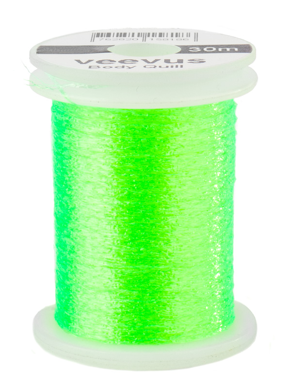 Das Body Quill von Veevus ist viel mehr als ein herkömmlicher Bindefaden! Das flache und äußerst strapazierfähige Garn besteht aus mehreren, leicht transparenten Synthetikfasern (ca. 2mm breit) und bietet unzählige Einsatzmöglichkeiten am Bindestock: Die natürlichen Farben sind ideal um sehr schlanke und filigrane Körper für Trockenfliegen, Nymphen oder Buzzer zu binden. Die kräftigen Farben eignen sich besonders gut für Tags, Hot Spots oder für feine Rippungen und Segmentierungen.