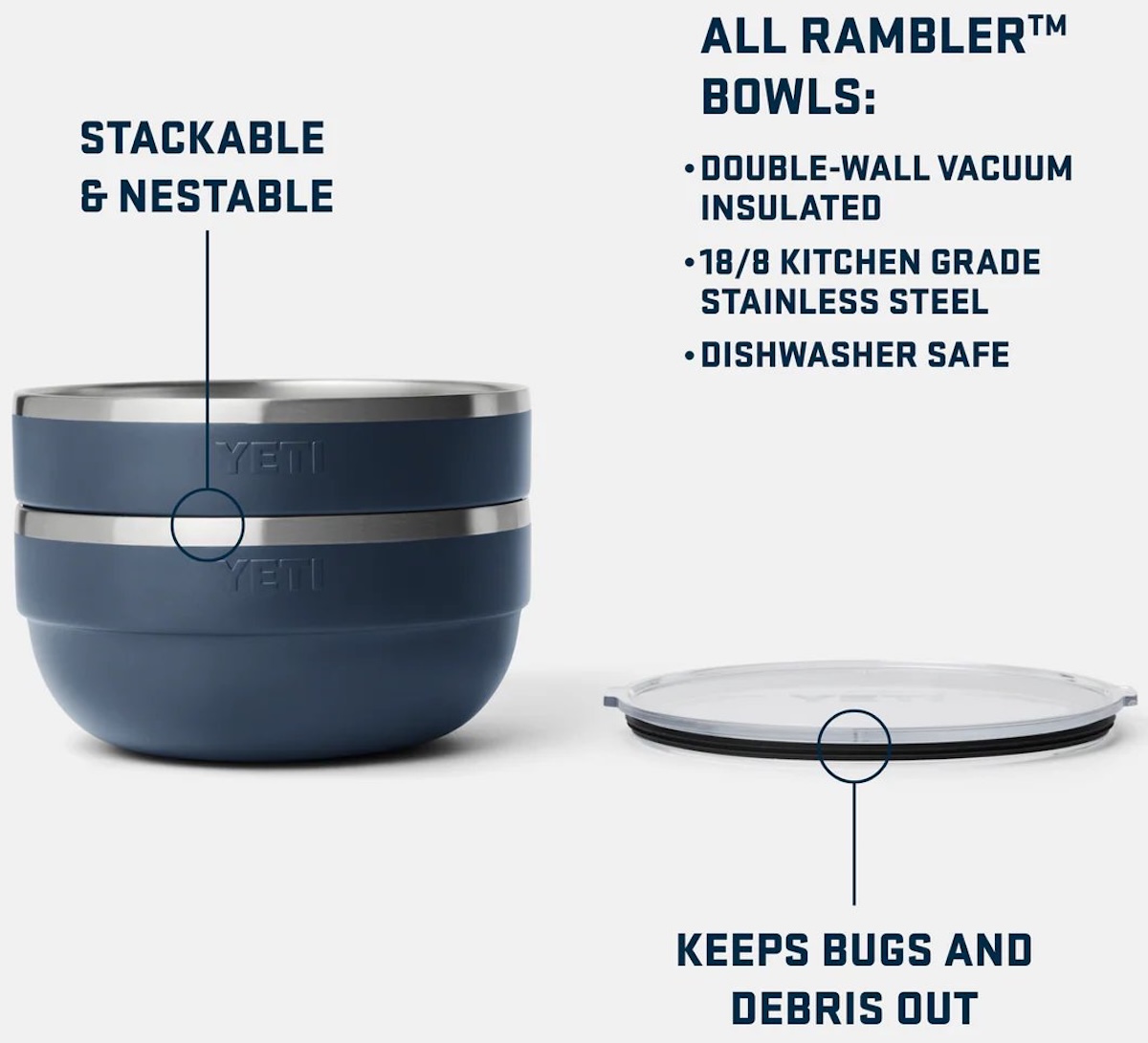 Gefertigt aus hochwertigem 18/8 Edelstahl mit doppelwandiger Vakuumisolierung überzeugt die YETI Rambler Large Insulated Bowl durch hohe Langlebigkeit, Temperaturstabilität und Widerstandsfähigkeit. Die Isolation sorgt dafür, dass der Inhalt länger auf Temperatur bleibt, ohne dass die Außenseite unangenehm heiß oder kalt wird. Außerdem ist die Bowl spülmaschinengeeignet und lässt sich leicht reinigen.