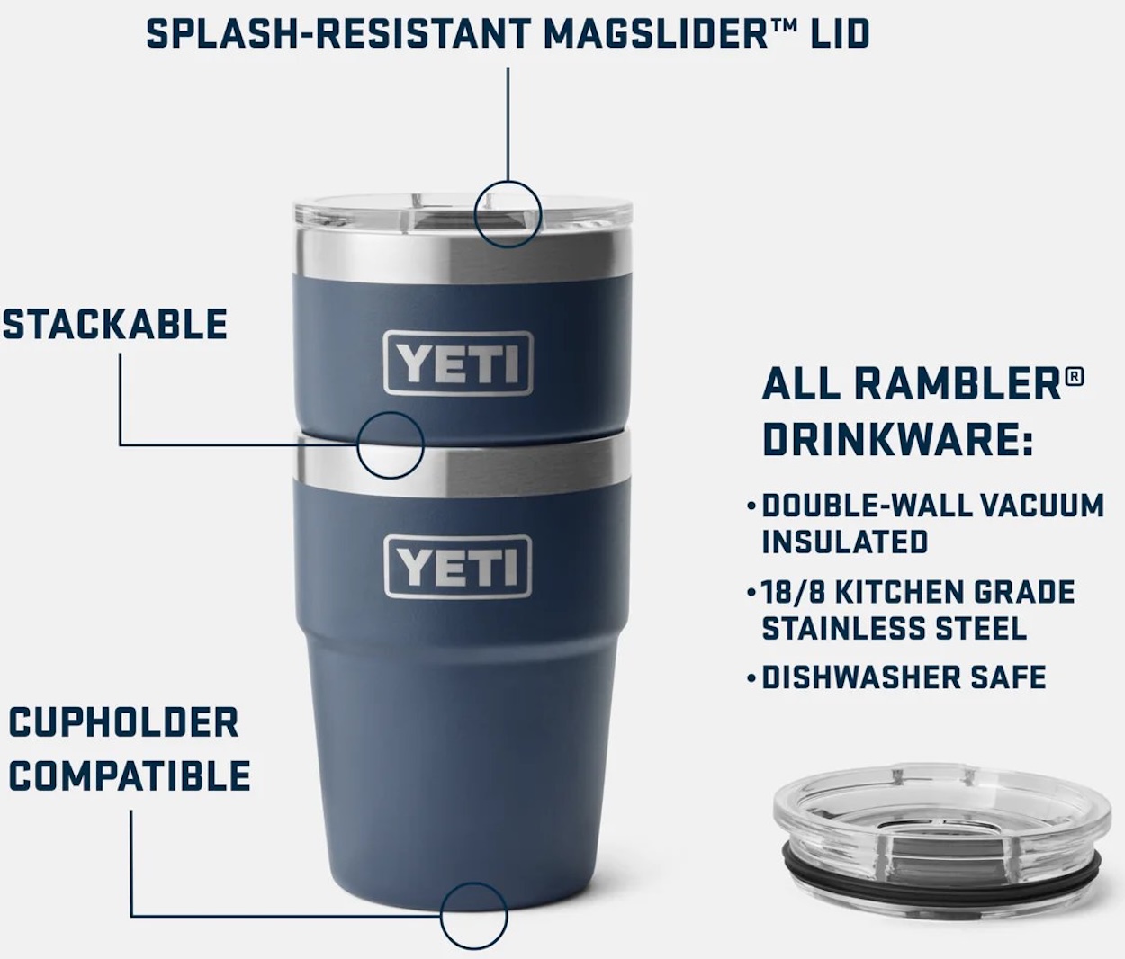 Der YETI Rambler® 16 oz stapelbare Becher (473 ml) ist der ideale Begleiter für alle, die unterwegs nicht auf heiße oder kalte Getränke verzichten möchten. Durch sein platzsparendes, stapelbares Design und die Getränkehalter-Kompatibilität eignet er sich perfekt für Reisen, Pendelstrecken oder Outdoor-Abenteuer. Der spritzgeschützte MagSlider™-Deckel sorgt dafür, dass dein Getränk länger auf Temperatur bleibt, ob beim Camping, im Auto oder im Büro.
